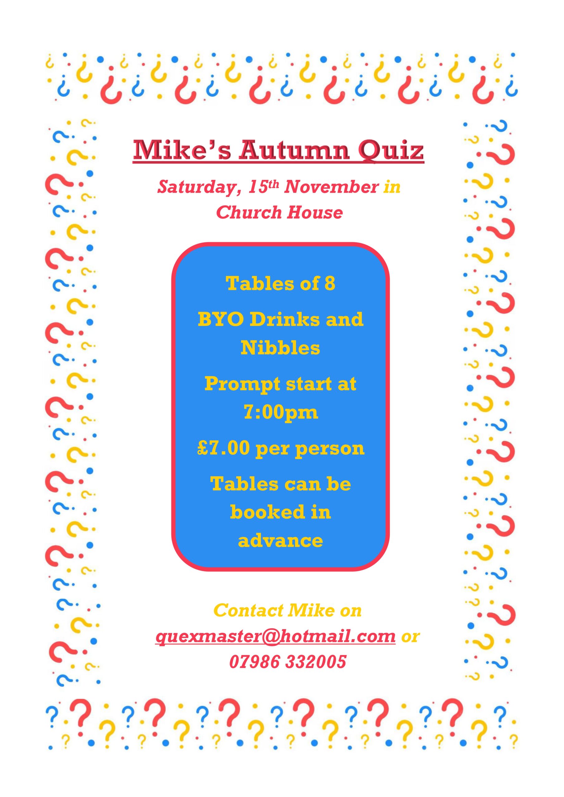 Tables can be booked in advance – Contact Mike on quexmaster@hotmail.com or 07986 332005