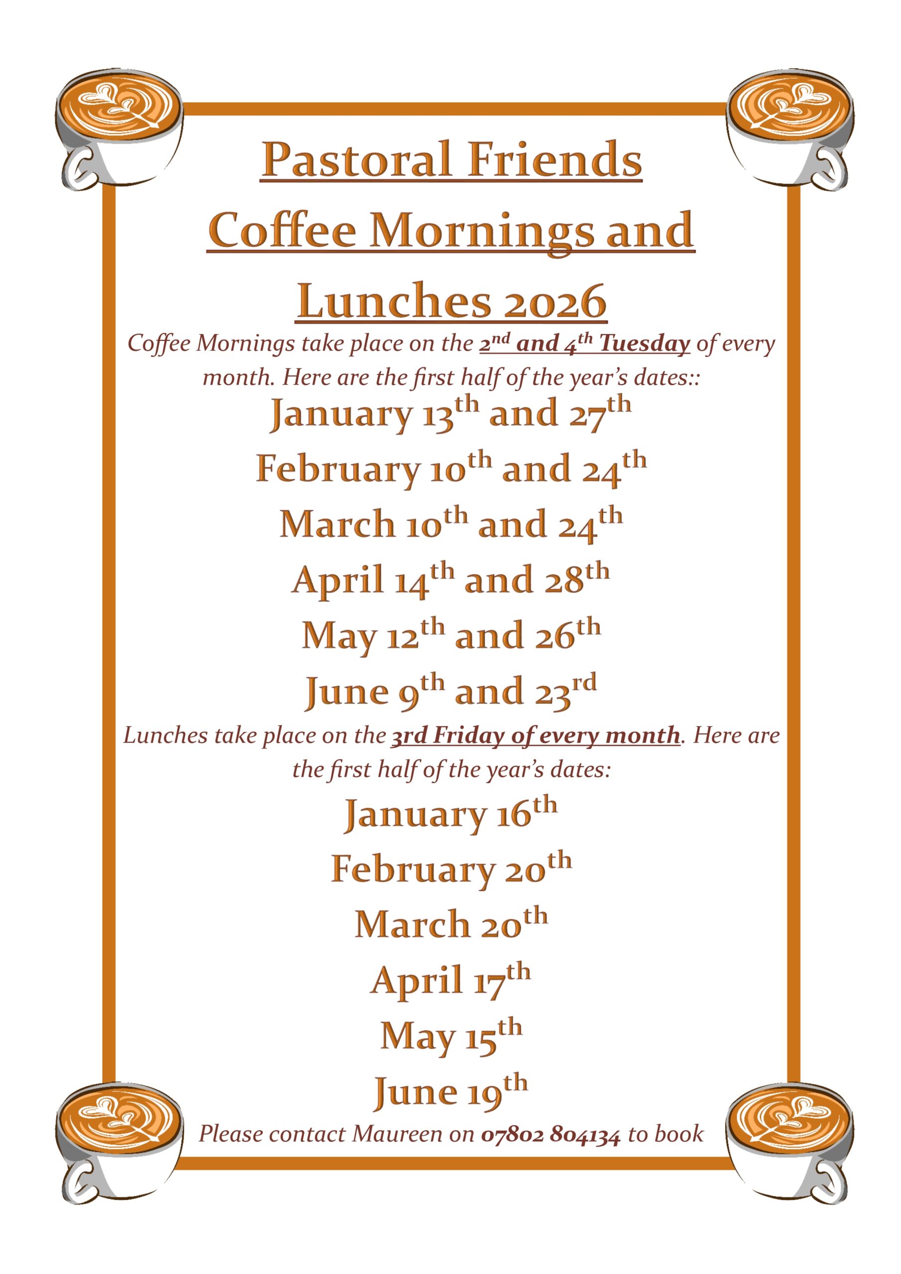 Pastoral Friends Coffee Mornings & Lunches